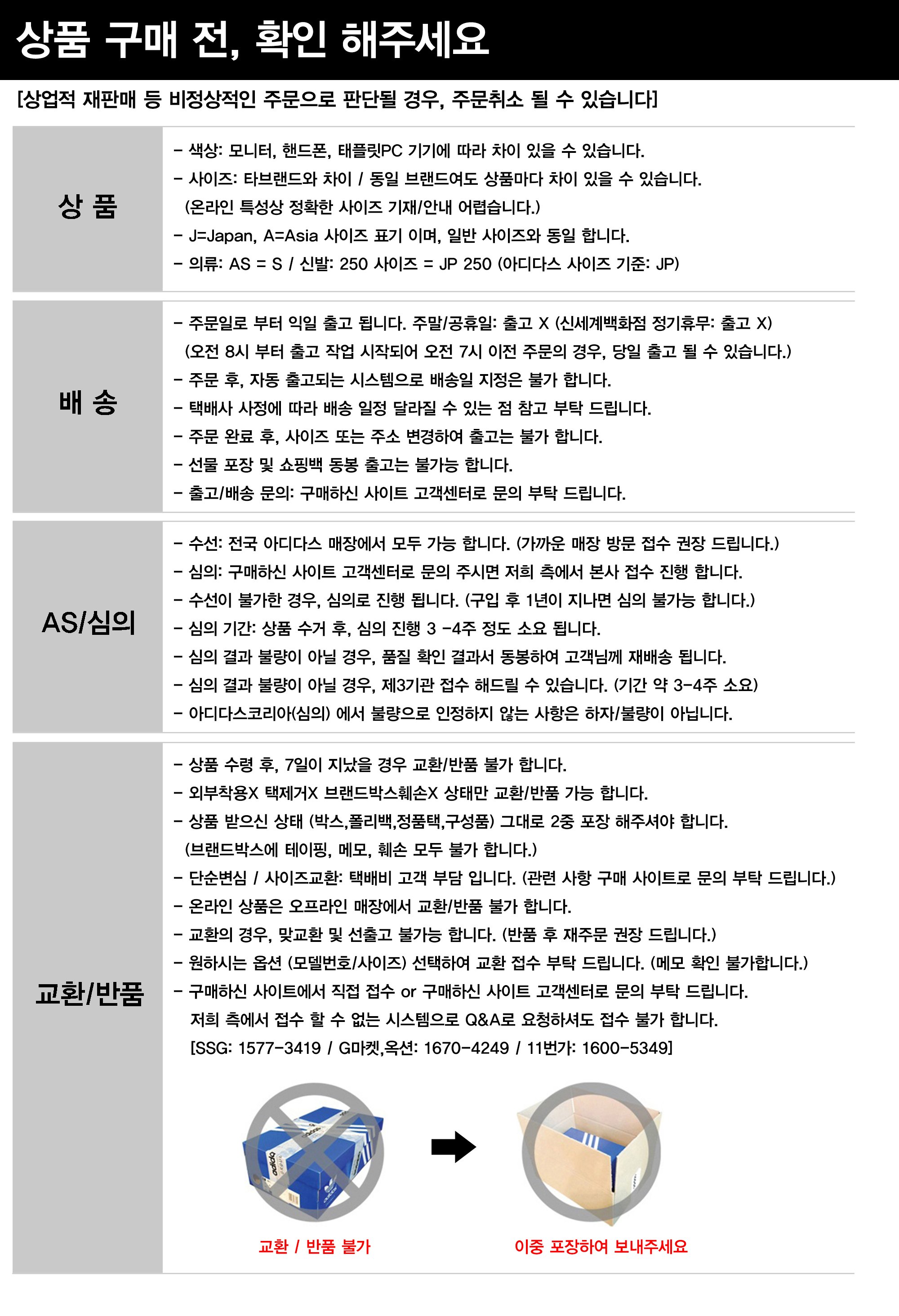 아디다스 사이즈 기준은 제품 선택을 위한 참고용 입니다.