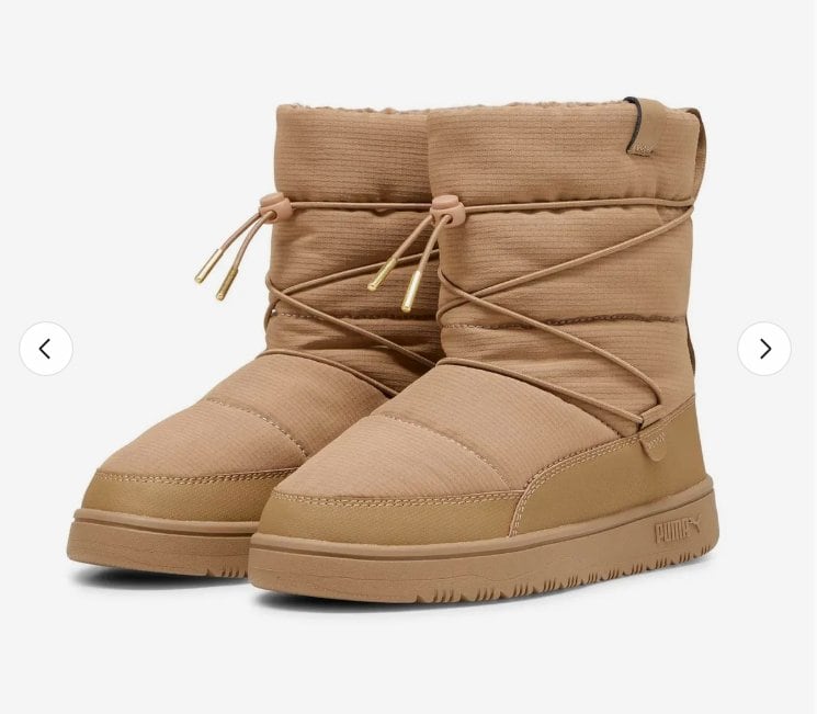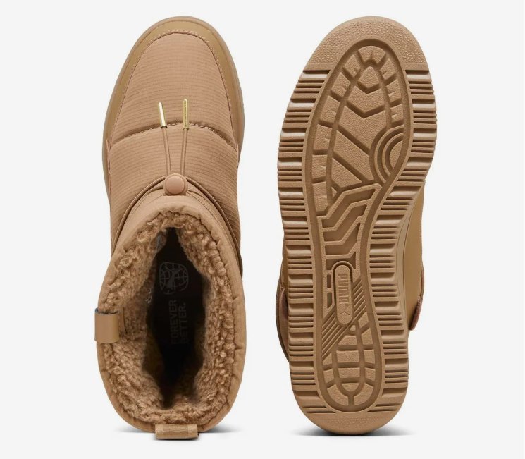 > 패딩 소재와 털 라이닝으로 우수한 보온성의 라이프스타일 방한 부츠 > 머드 가드로 인하여 내구성이 우수하며 겨울철 부츠에 적합한 고무 소재의 아웃솔 > 토글 형태의 클로저 타입으로 탈착화 용이
