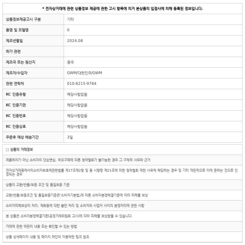 반품/교환시 공급사에서 직접 수거접수하는 업체이며, 단순변심으로 인한 반품시 왕복배송비는 6,000원 / 반품시 본 박스 훼손시 반품불가합니다.